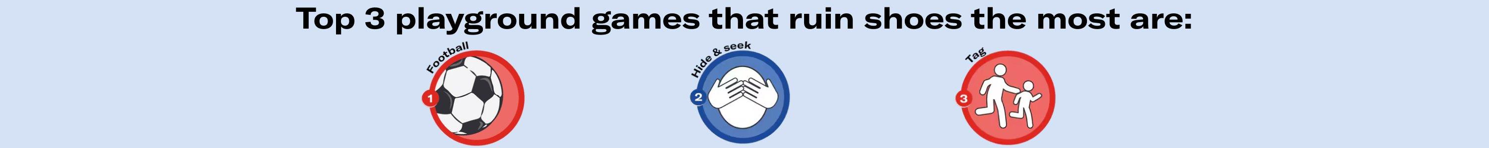 We found that the top three playground games that ruin shoes the most are: football, hide & seek and tag. Though these three games may wear away countless pairs of school shoes, they're all playground staples that won't disappear any time soon - so it's imperative that you make sure your child is equipped with the correct footwear to take part comfortably. Sure, your child may want to opt for the trendiest trainer, but it's important to remember that comfort is key - especially when it comes to school shoes.